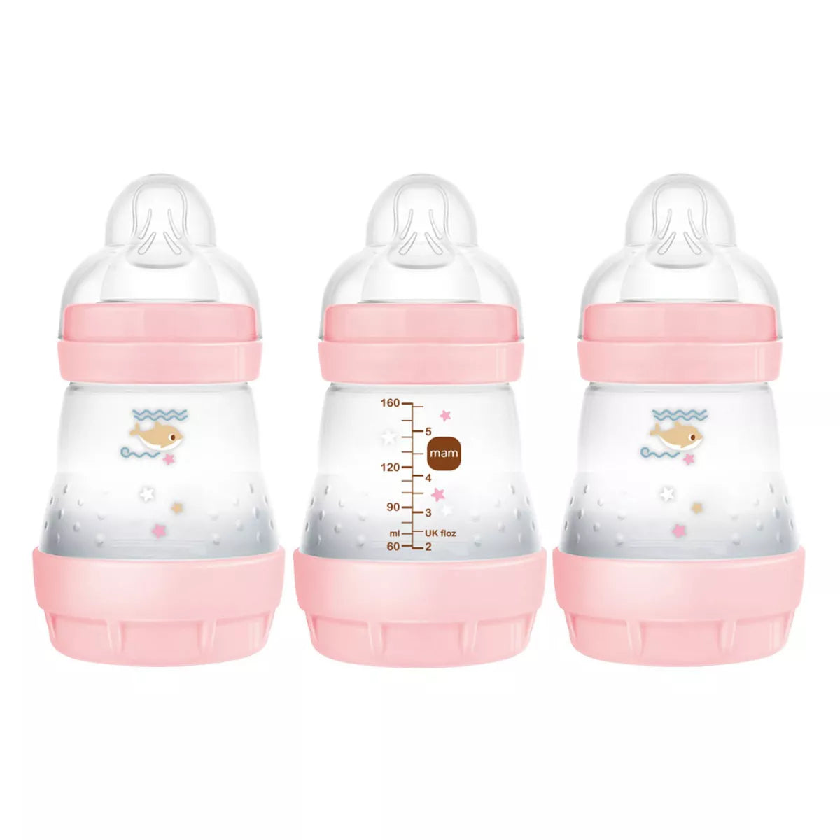 Biberones anticólicos MAM Easy Start de 5 onzas, paquete de 3, rosado