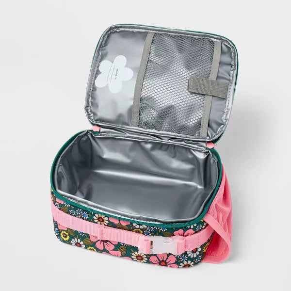 Ya sea para picnics o para el almuerzo escolar, esta lonchera clásica de Cat & Jack es práctica y fácil para la hora de comer de tu hijo. Hecha 100 % de poliéster reciclado, esta lonchera cuenta con un espacioso compartimento principal con cremallera y un bolsillo interior de malla para pañuelos, cucharas y más. Cuenta con un bolsillo lateral y frontal, una correa ajustable para ampliar el espacio de almacenamiento y está adornada con hermosos diseños que le dan un toque súper divertido.