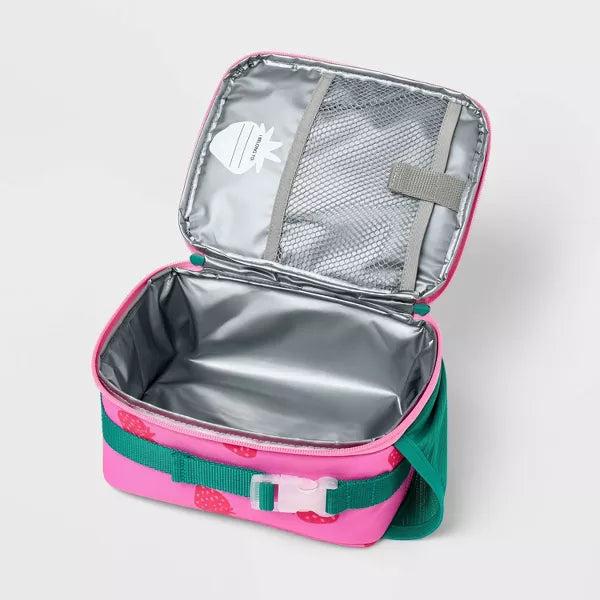 Ya sea para picnics o para el almuerzo escolar, esta lonchera clásica de Cat & Jack es práctica y fácil para la hora de comer de tu hijo. Hecha 100 % de poliéster reciclado, esta lonchera cuenta con un espacioso compartimento principal con cremallera y un bolsillo interior de malla para pañuelos, cucharas y más. Cuenta con un bolsillo lateral y frontal, una correa ajustable para ampliar el espacio de almacenamiento y está adornada con hermosos diseños que le dan un toque súper divertido.