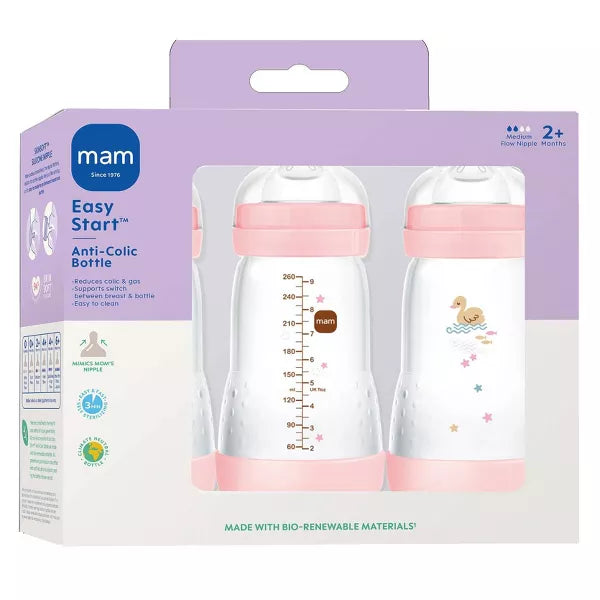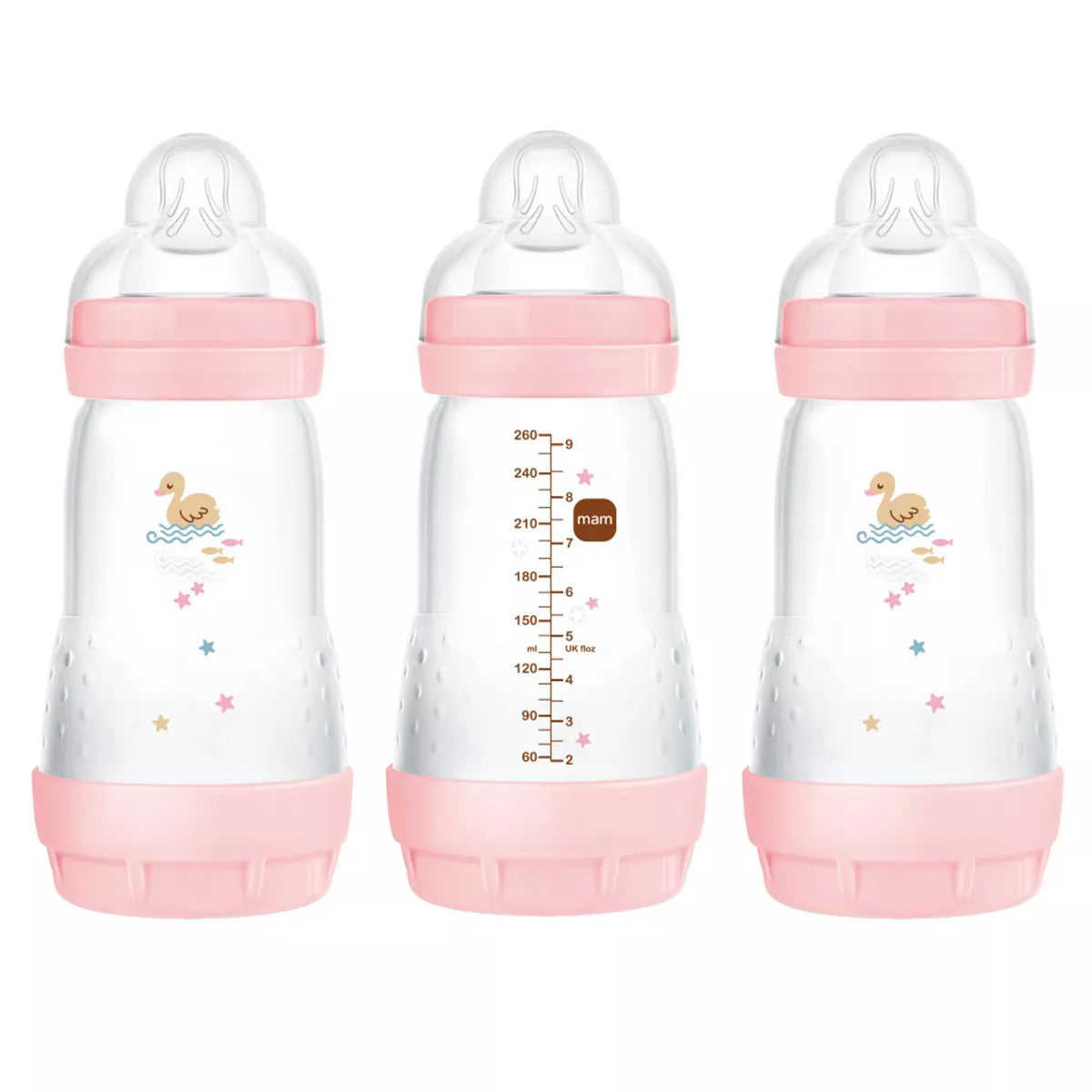 Biberones anticólicos MAM Easy Start de 9 onzas, paquete de 3, rosado