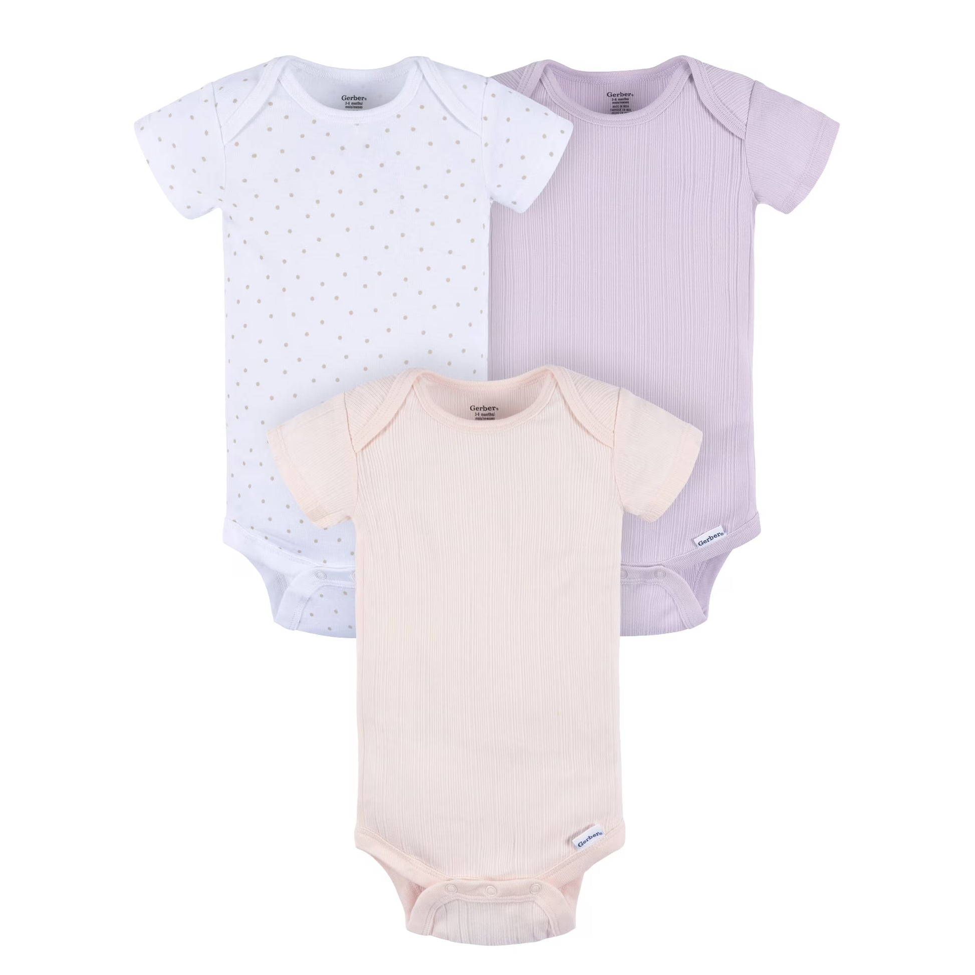 Mameluco de manga corta Gerber, paquete de 3, rosewater