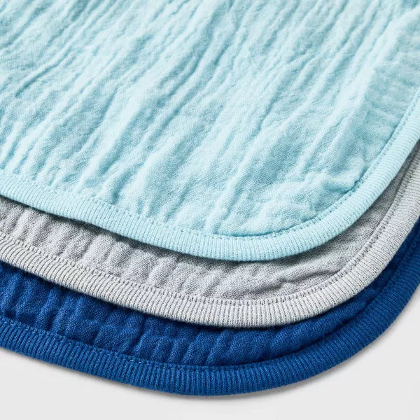 Paquete de 3 paños de muselina para eructar de Cloud Island. Son perfectos para mantener a tu pequeño limpio, seco y cómodo. Este set básico para bebé incluye tres paños rectangulares en tonos lisos, cada uno con ribete acanalado a juego para una apariencia impecable. Hechos de muselina de algodón, estos paños son suaves, absorbentes y delicados con la delicada piel del bebé, y ayudan a proteger tu ropa de la baba y las regurgitaciones mientras lo alimentas, lo haces eructar y lo acurrucas.