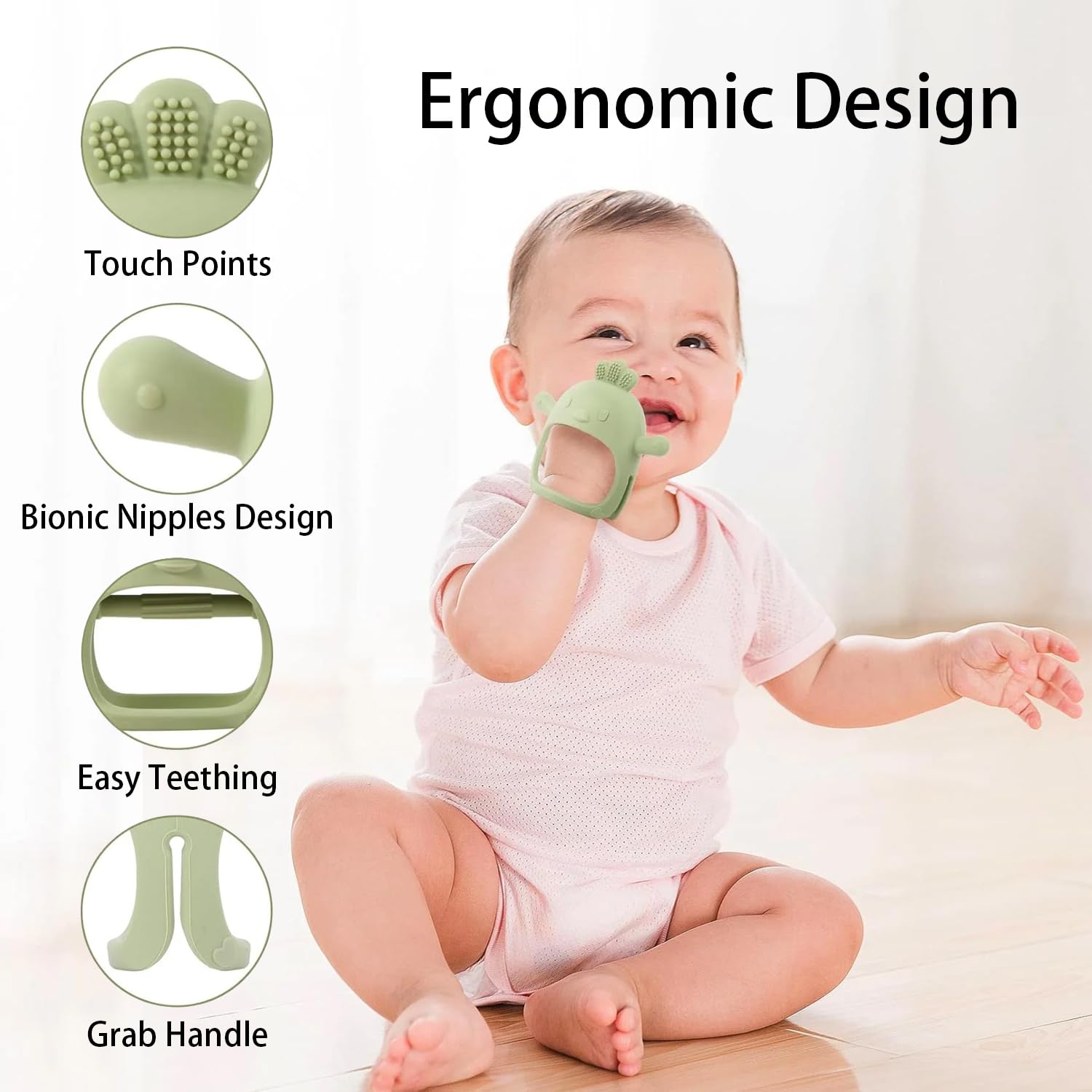 Juguetes para la dentición de bebés de 0 a 12 meses, chupetes masticables para aliviar el dolor de la dentición (verde y beige).