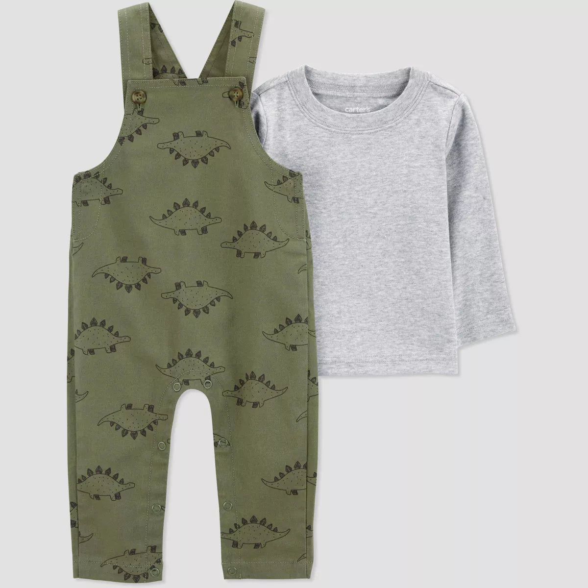 Romper verde dinosaurio y camisa gris